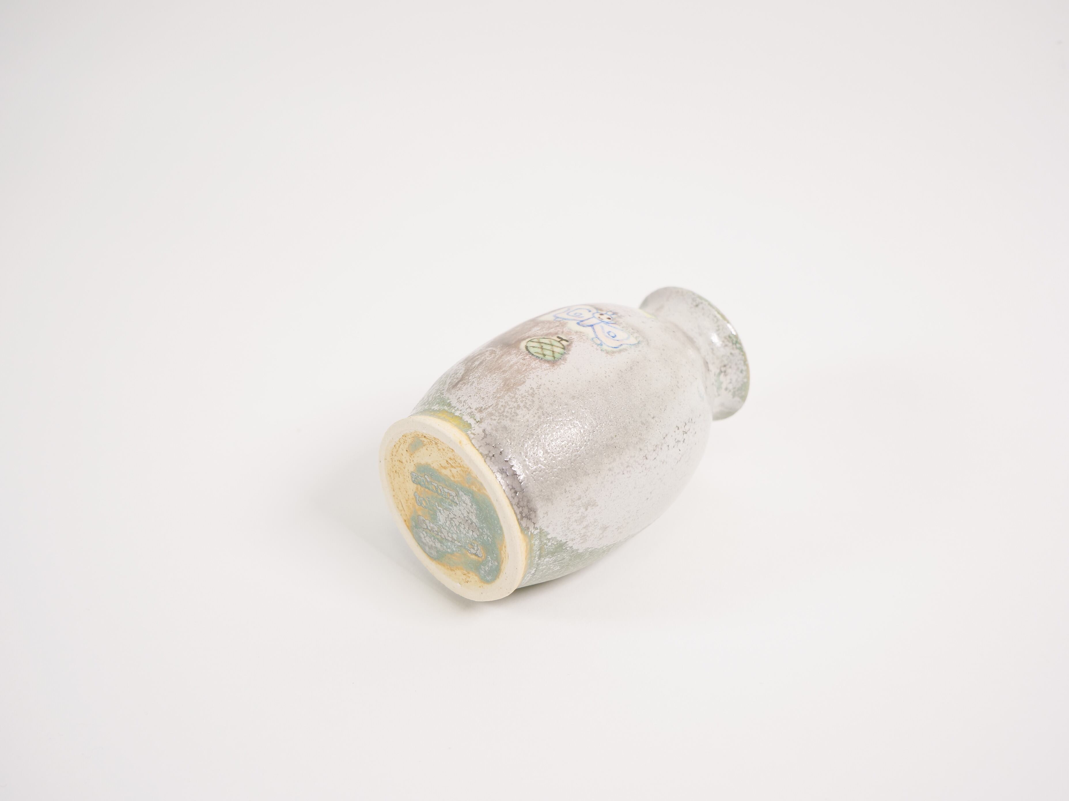薄い桜灰色の釉薬と緑結晶の釉薬がいい感じの小さめの壺です。