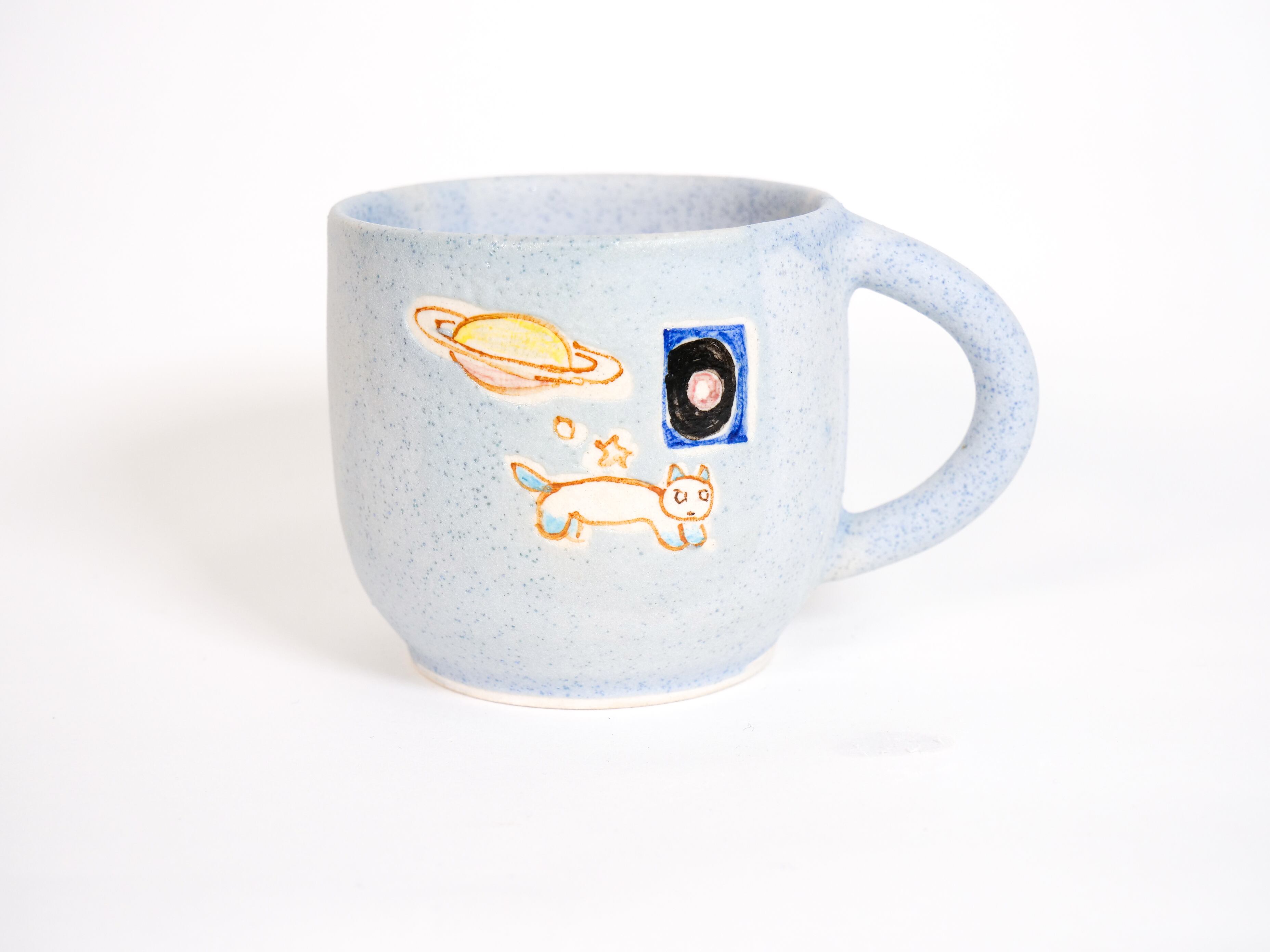 水色マットの釉薬がかわいいマグです。