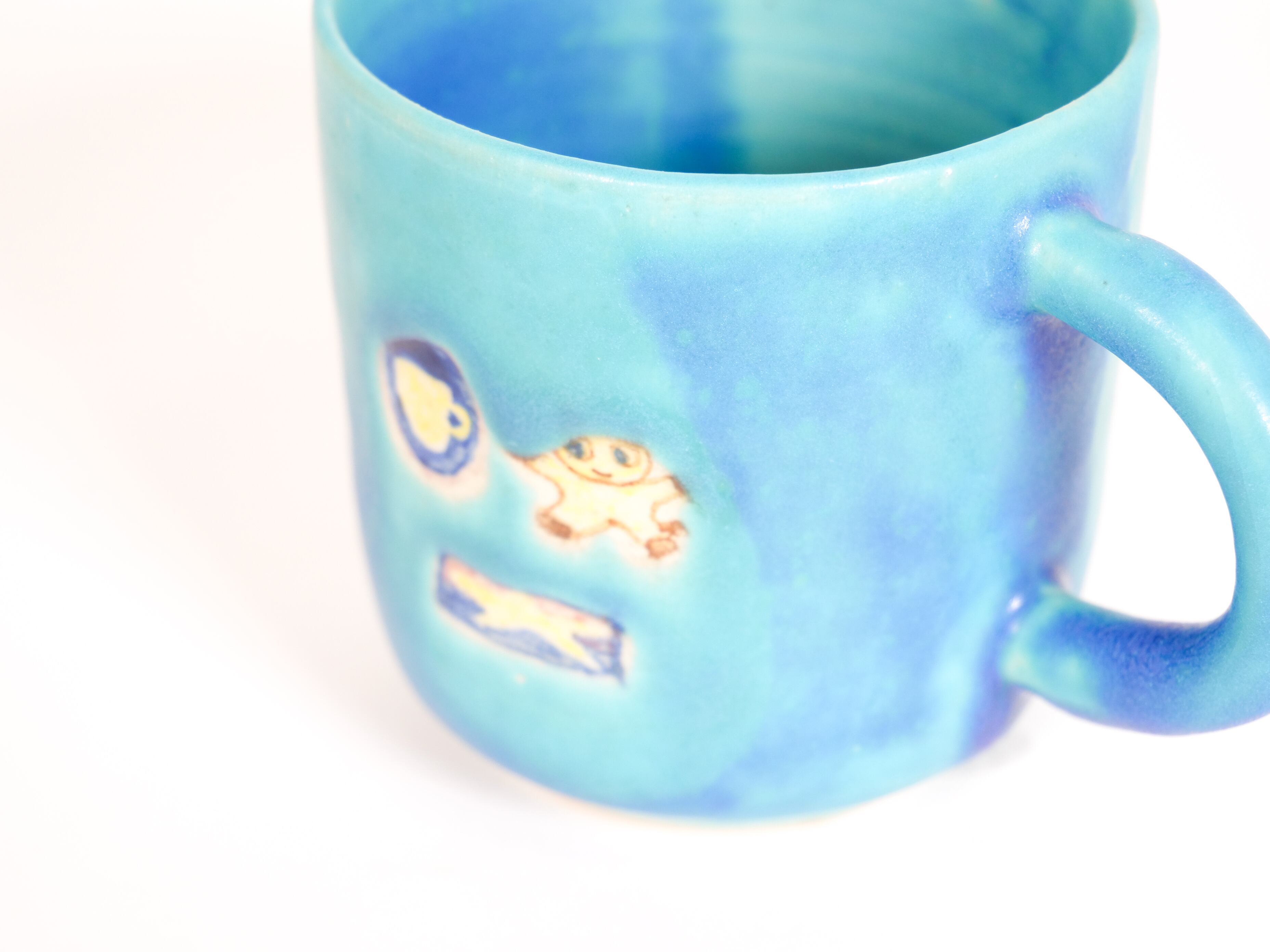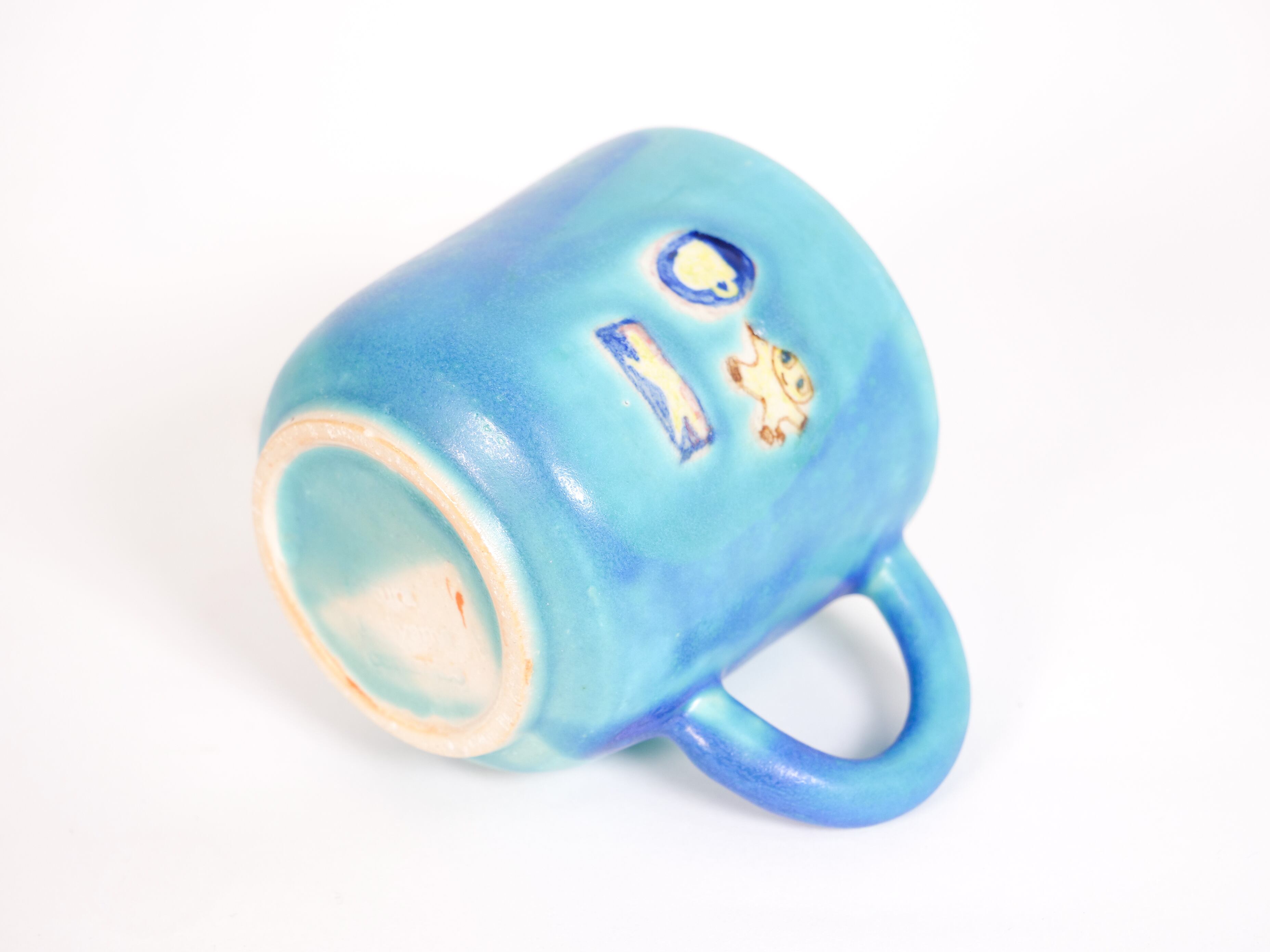 深いブルーマットの釉薬がかわいいマグです。