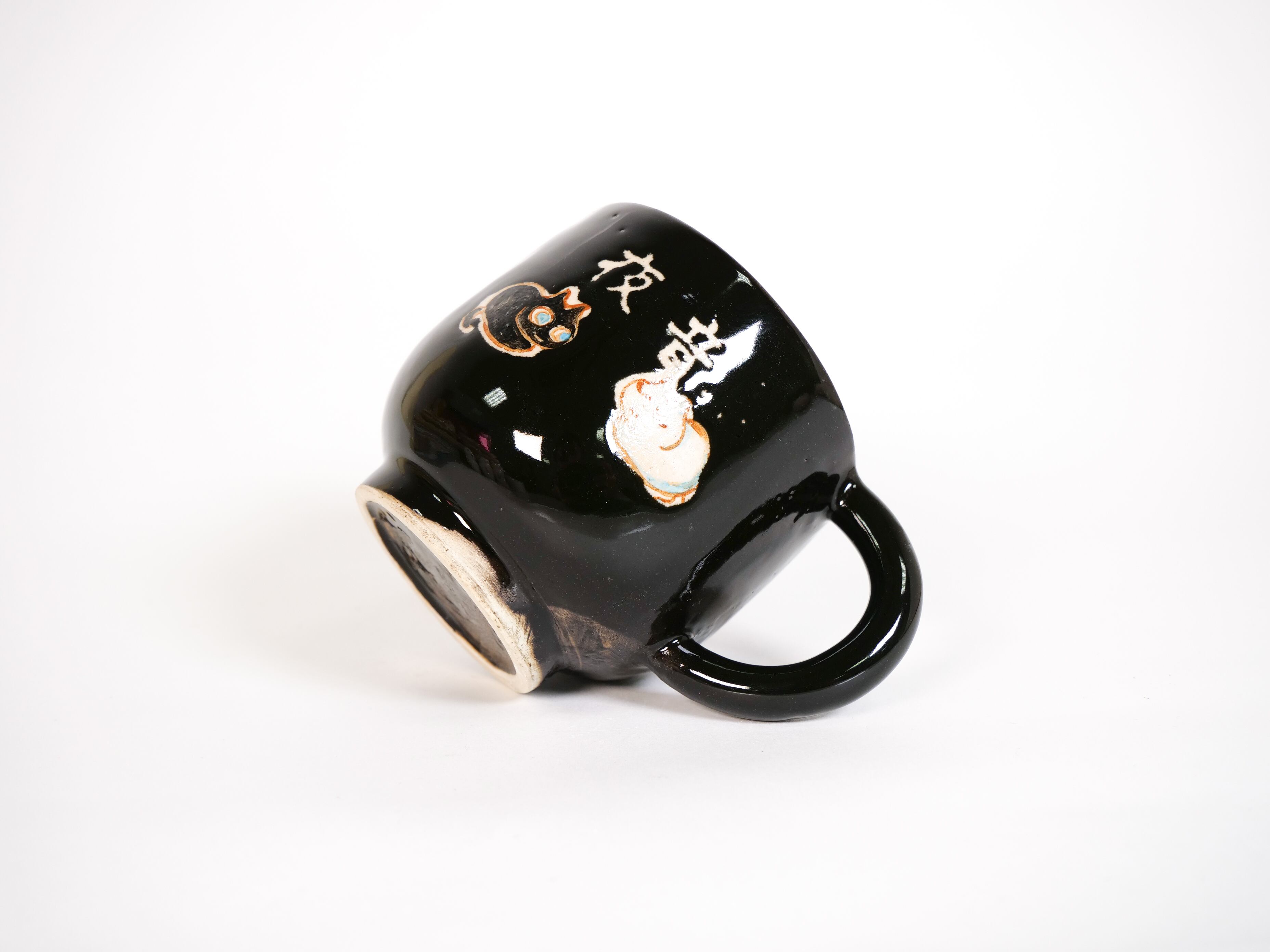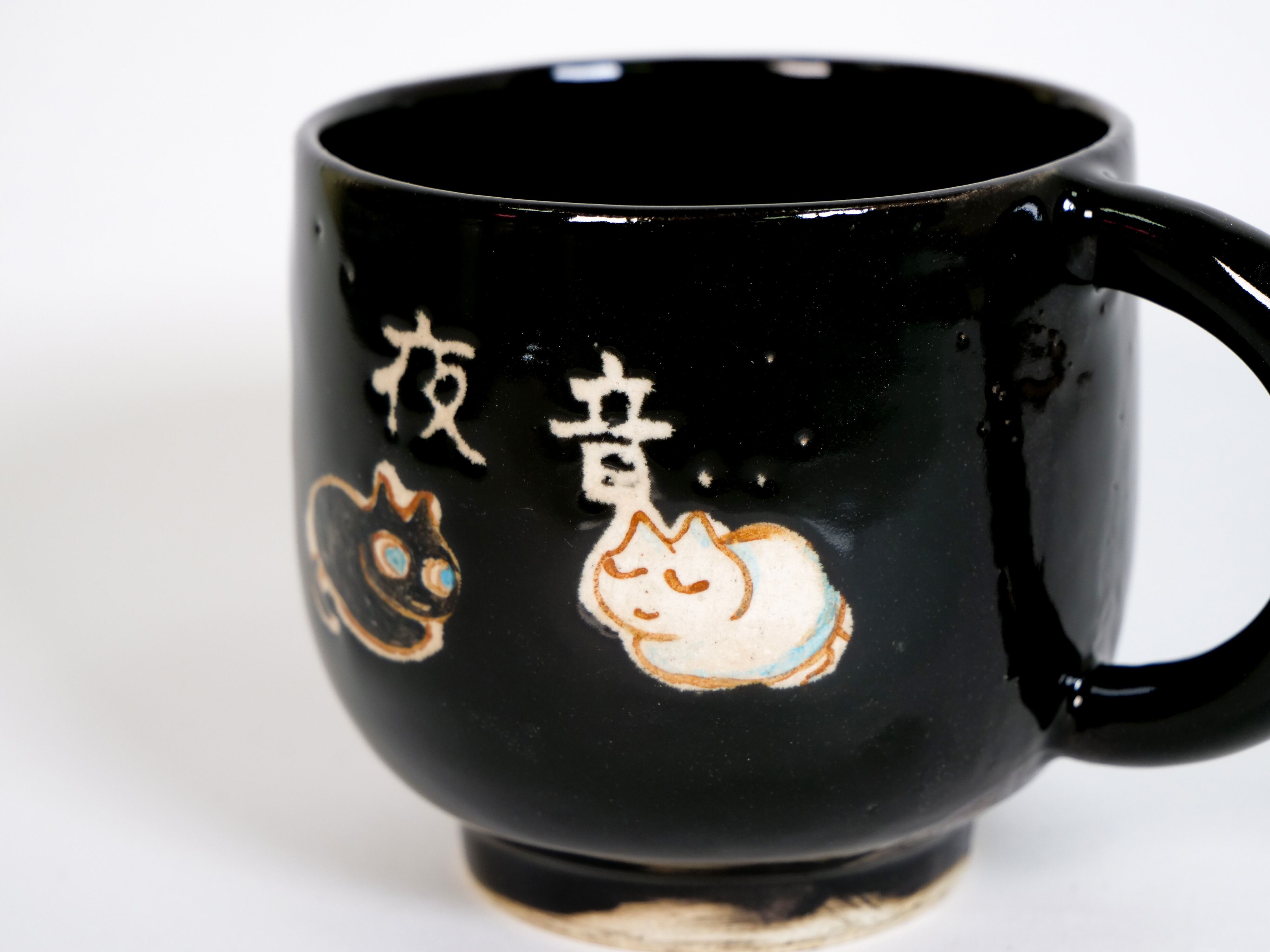 夜の静けさが感じられる黒い釉薬のマグです。