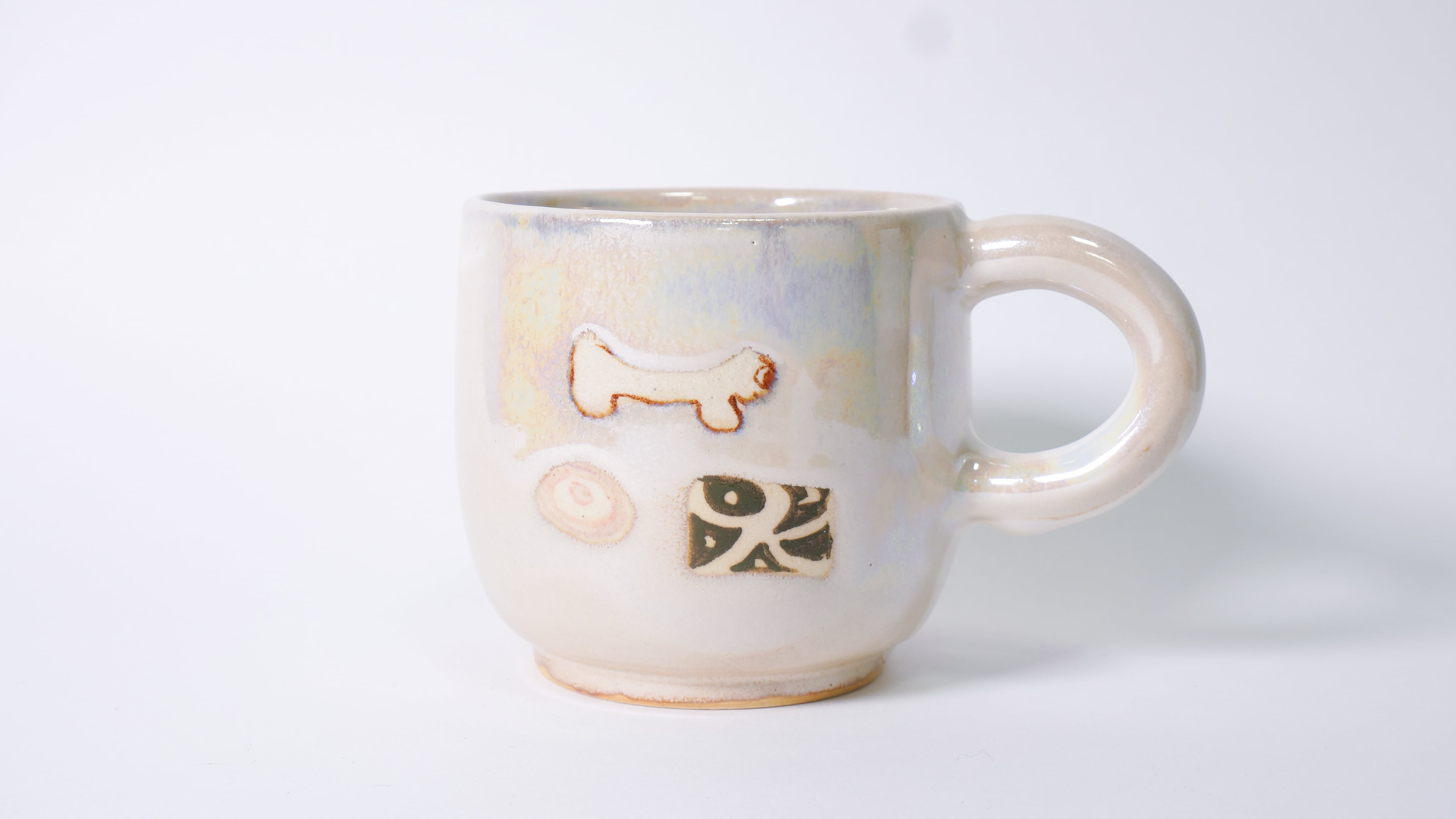 パール釉薬がたっぷり乗った埋もれぎみの生き物のマグです。